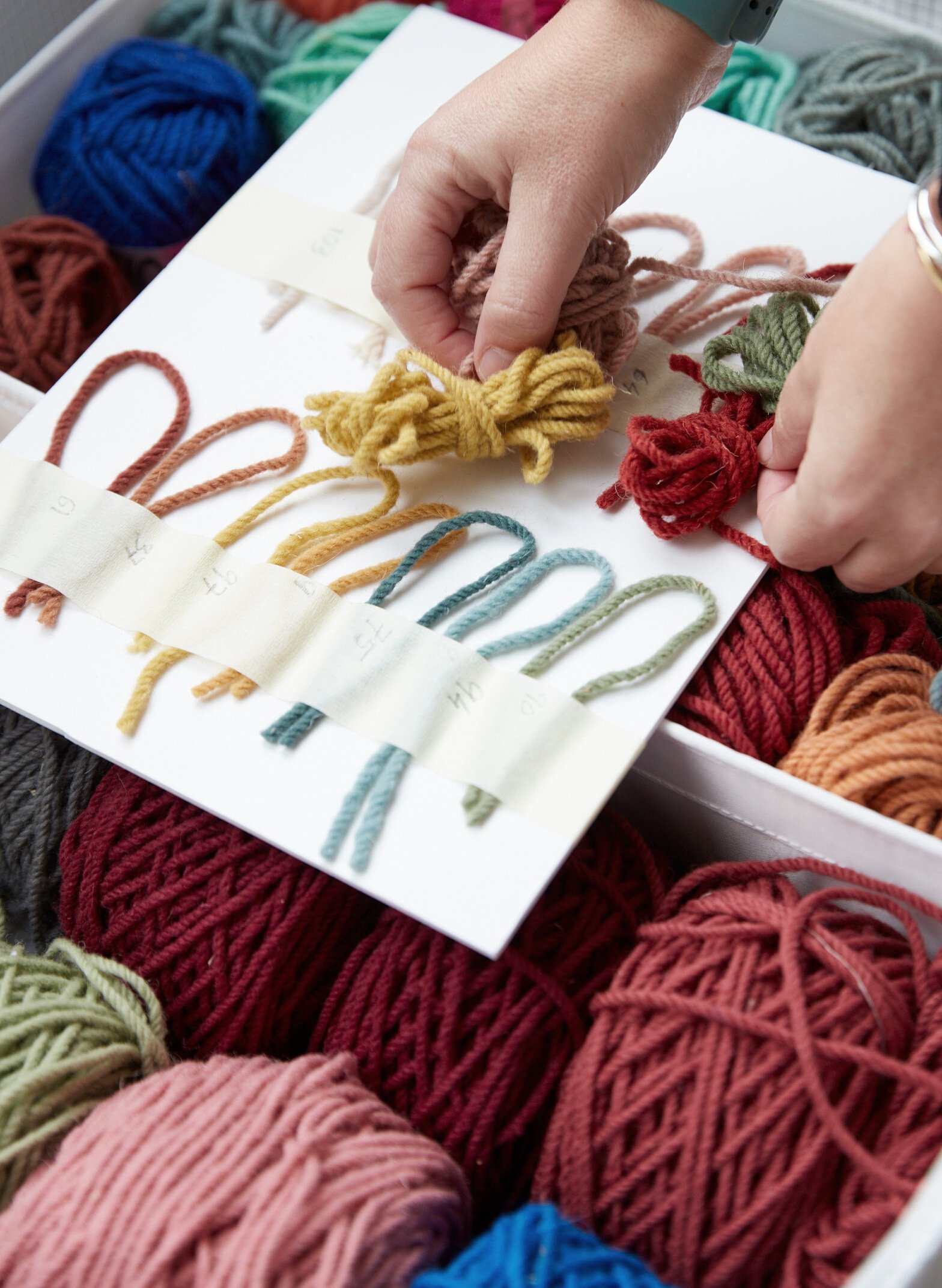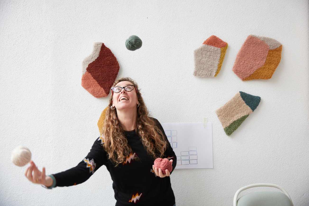 A maioria dos projetos são tapeçarias personalizadas mas também desenvolve pequenas séries de edição limitada para venda.