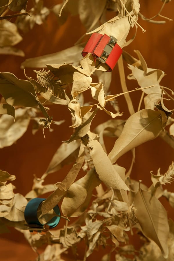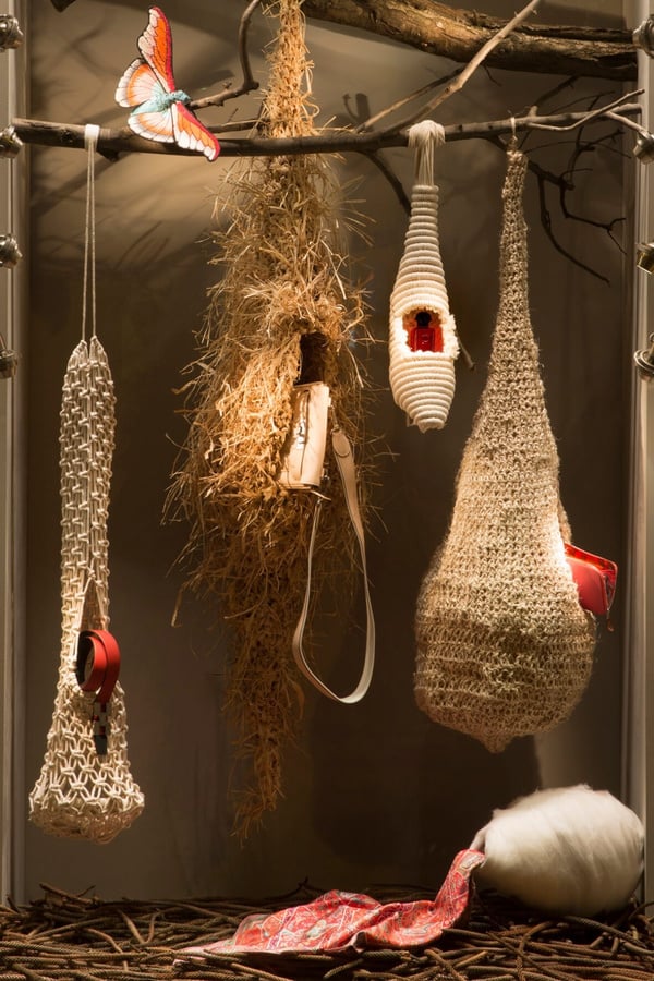 Casulos para montra da Hermès Lisboa desenhada pela artista portuguesa Joana Astolfi, 2016.