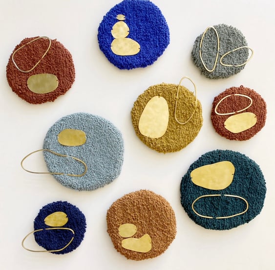 Tapeçarias bordadas em tufting, medidas entre 14 cm diâmetro e 23 cm de diâmetro , 2023.