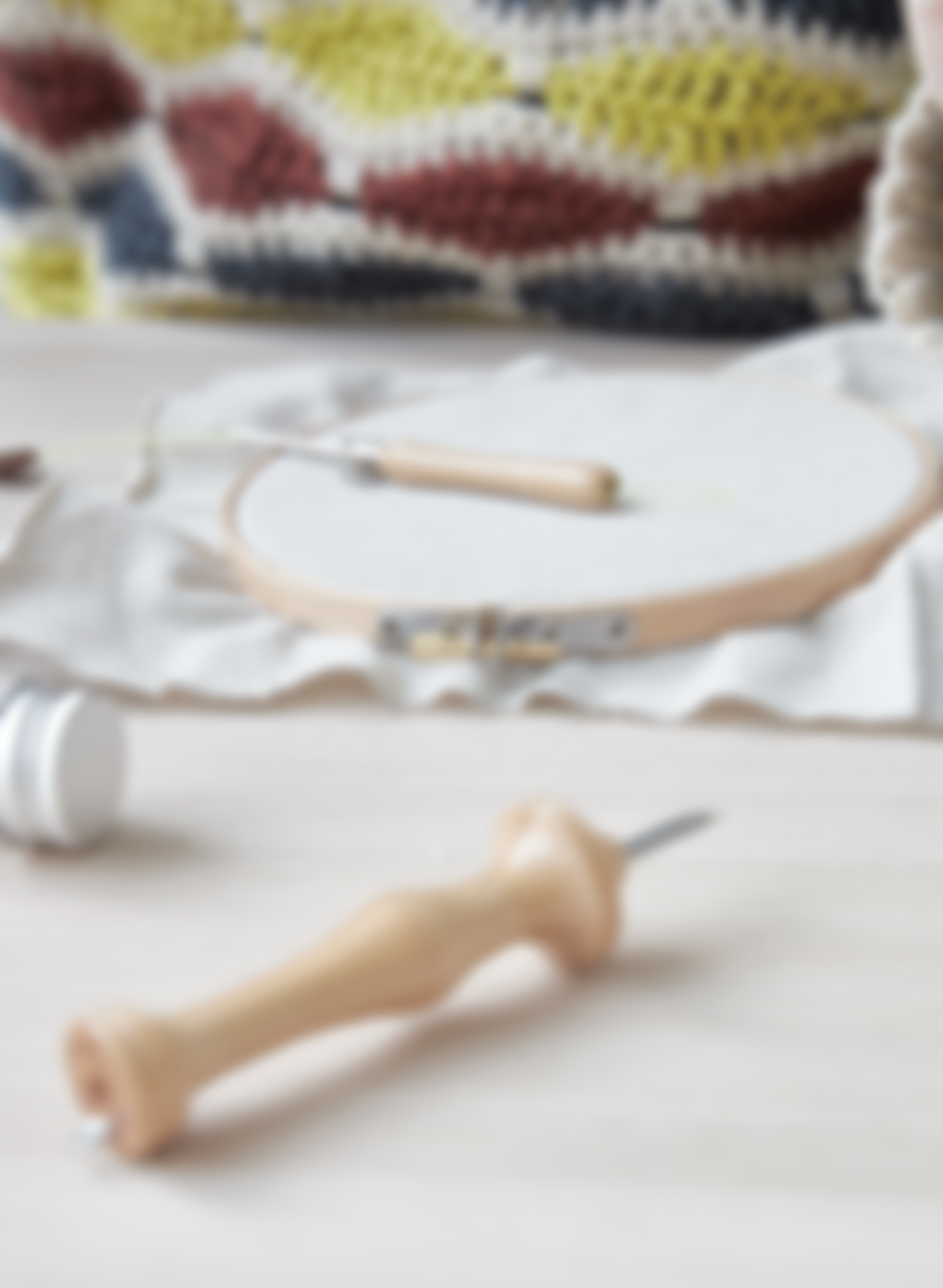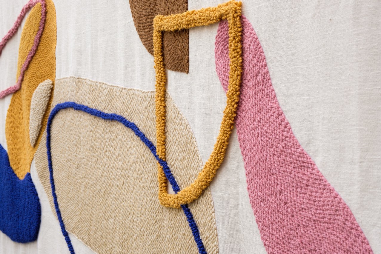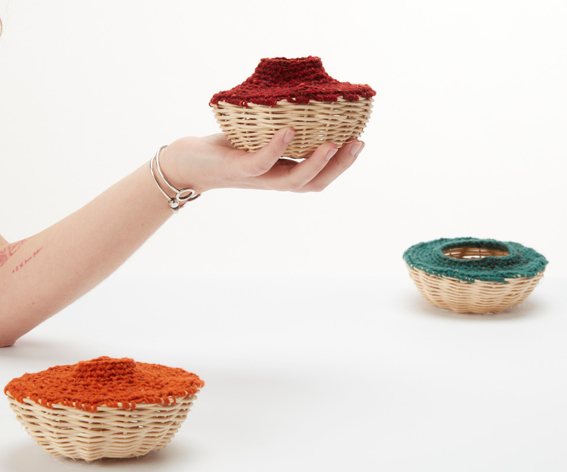 Explora os têxteis através das tapeçarias bordadas em lã sobre linho e das esculturas feitas em crochet com materiais como ráfia, sisal e lã. As combinações improváveis entre materiais são na realidade uma constante como se pode verificar na coleção de cerâmicas em alia detalhes de crochet feitos com lã de arraiolos a taças e jarras.