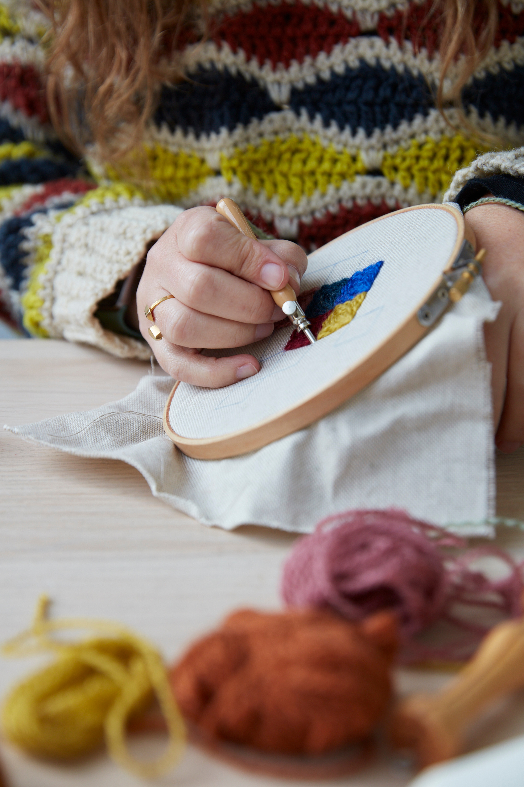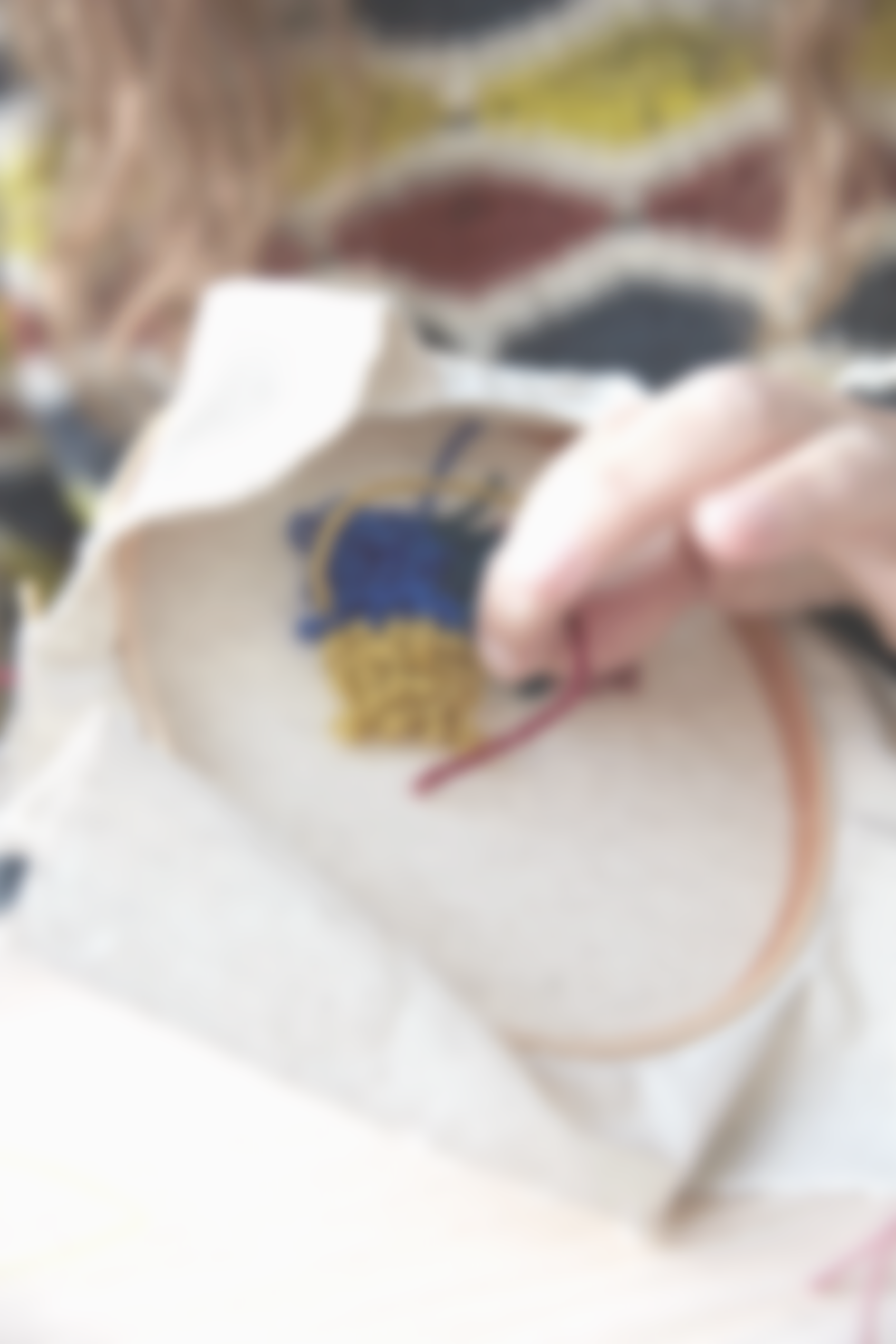Há cerca de 4 anos inicia uma exploração no bordado com uma técnica antiga, a fada-do-lar. A base é procurar texturas e materiais que dêem maior riqueza ao projetos.